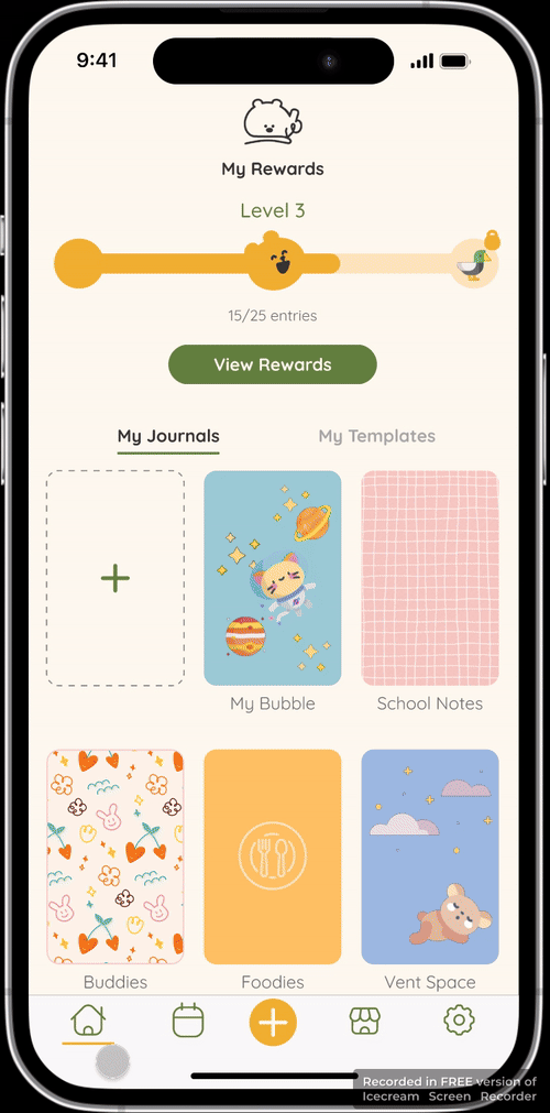 Effortlessly record thoughts and experiences on-the-go in an individualized space