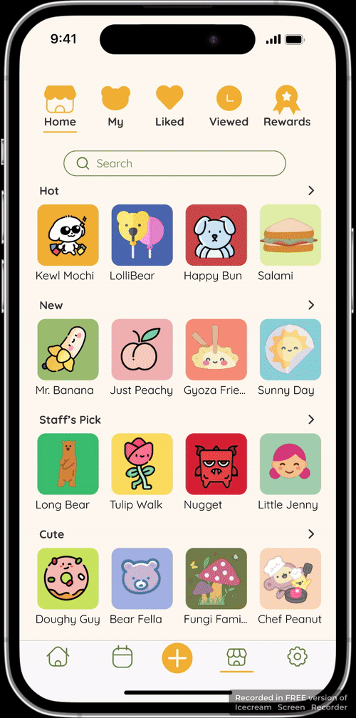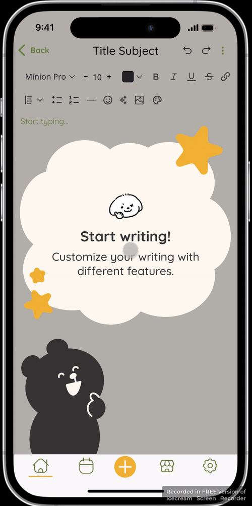 We looked for combinations using wordplay or puns to make the app feel more relevant at first impression. After many candidates were thrown out the window, we decided on “Barenote,” which signifies starting with a fresh blank page when creating ideas. The “bare” word is a wordplay on “bear” that adapted into our cute little mascot character to add to the app immersion.