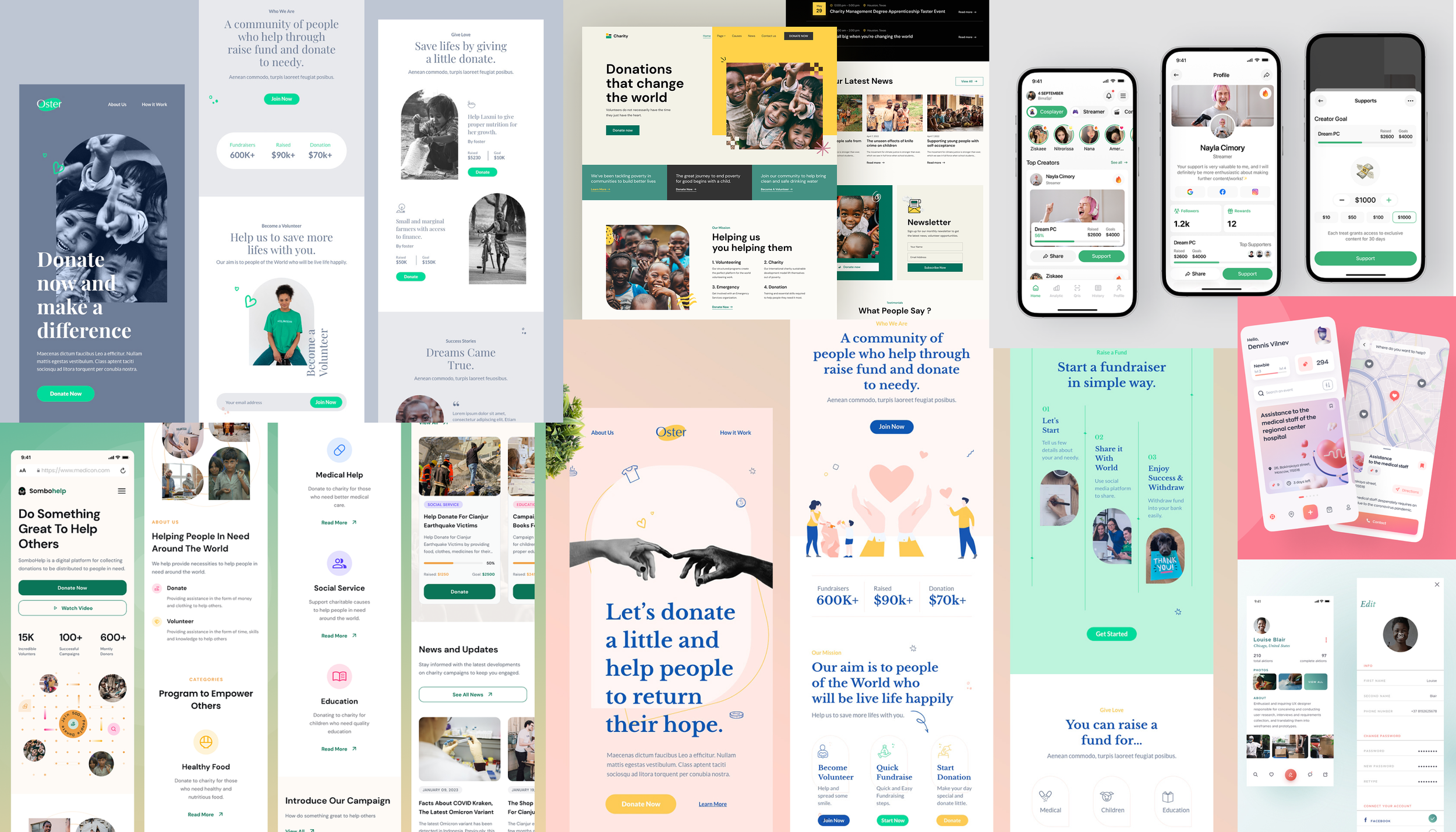 As I collected ideas and researched how charity organizations display their contributions and services, I found similar layout patterns in cleanliness, modernity, and simplicity.